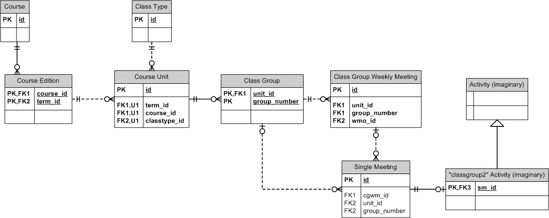 Class Group Weekly Meeting, Class Type, Course, Course Edition, Course Unit, Weekly Meeting Option.